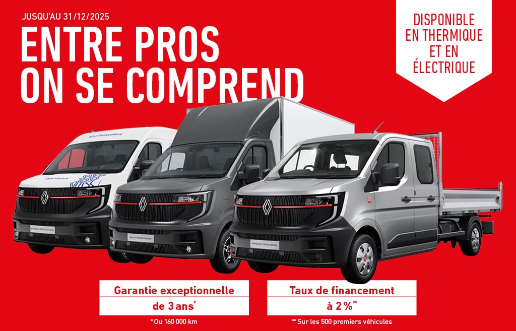 👉 Jusqu’au 31 décembre 2025, Renault Trucks lance une offre exceptionnelle sur la gamme Renault Trucks Master — thermique ou électrique. Une offre pensée pour vous permettre de rouler sereinement, tout en maîtrisant votre budget.